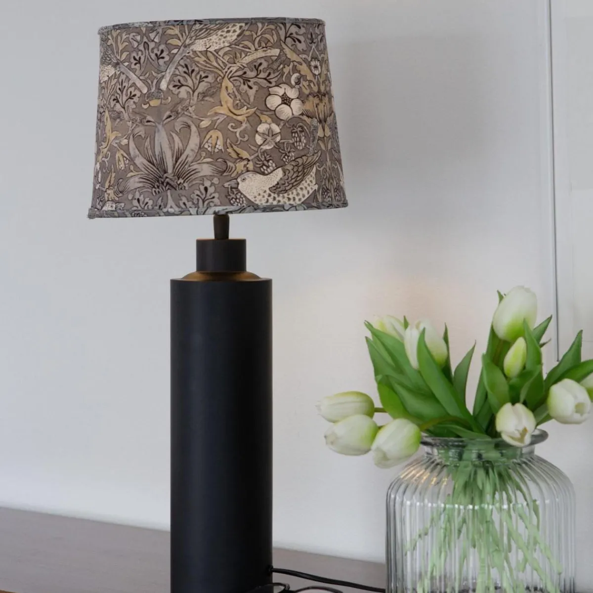 Solos lampefot i flere farger med en sylinderformet mønstret skjerm. Skjermen er 25 cm bred og 18 cm høy og har et fast E27-feste.