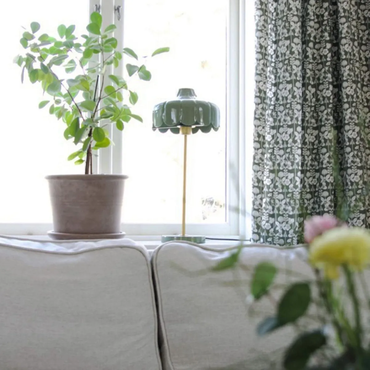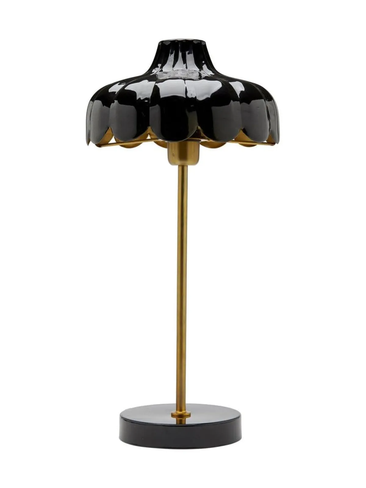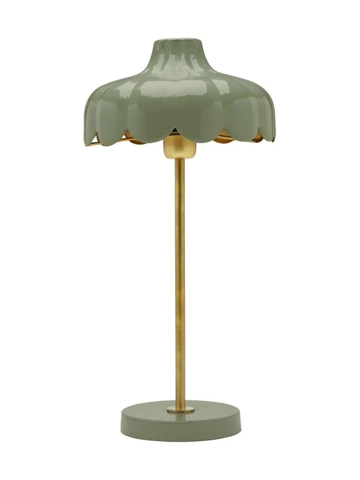 Bordlampen Wells i metall. Vår serie Wells er designet og inspirert av blomsterblader. Finnes i flere farger og modeller. Alle med gullfarget innside som gir en varm glød. Hver skjerm er laget for hånd, og mindre avvik i høyde og bredde kan forekomme.