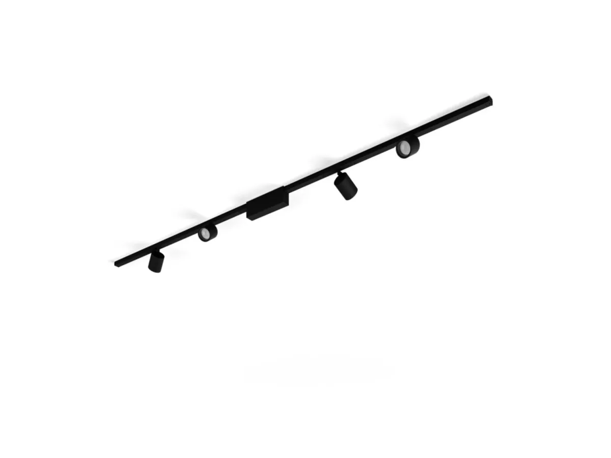 Dette hvite skinnebelysningssettet til tak inkluderer to sylinderspotlight, to pendellamper, to 1-meters skinner og en strømforsyning