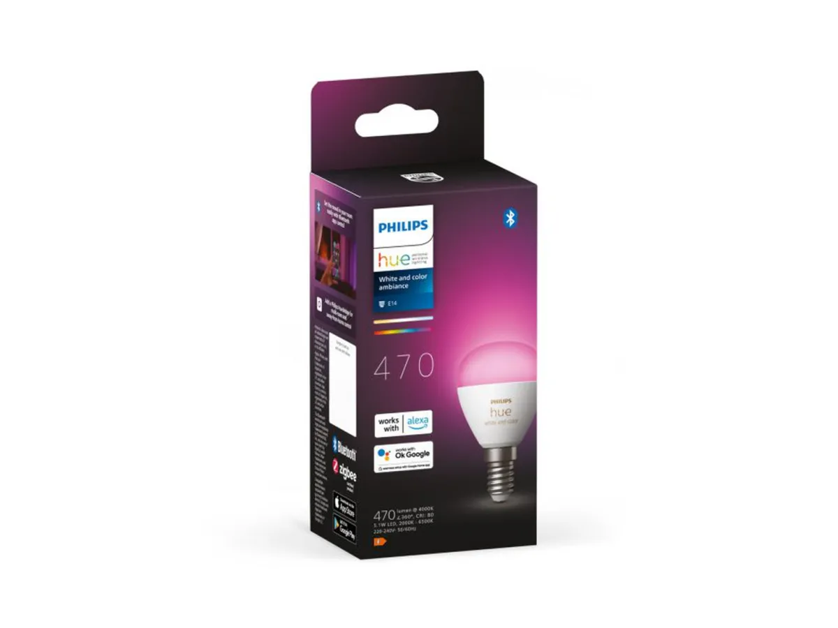 Med Philips Hue P45 E14-lyskilden kan du integrere de minste lampene og armaturene dine i Philips Hue-smartbelysningssystemet