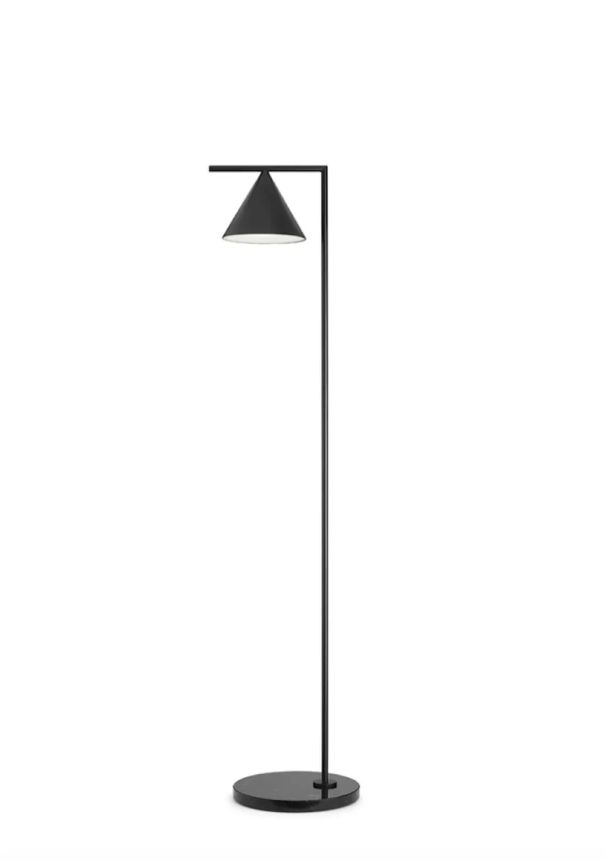 Captain Flint gulvlmampe ble designet av Michael Anastassiades i 2015 og er en relativt ny gulvlampe fra Flos. Det fine med denne lampen, i tillegg til at den er lekker å se på, er at den har to funksjoner lysmessig. Den egner seg svært godt som leselys, men også som en uplight som gir en indirekte belysning i rommet. Hodet er bevegelig for enkelt å kunne skifte mellom disse to funksjonene. Lampen leveres med integrerte led dioder, slik at en slipper å bytte lyspære. Led har som kjent meget lang levetid, blir ikke varmt og bruker lite strøm. Den kan også dimmes. Stamme i sort, og fot i Carrera marmor.