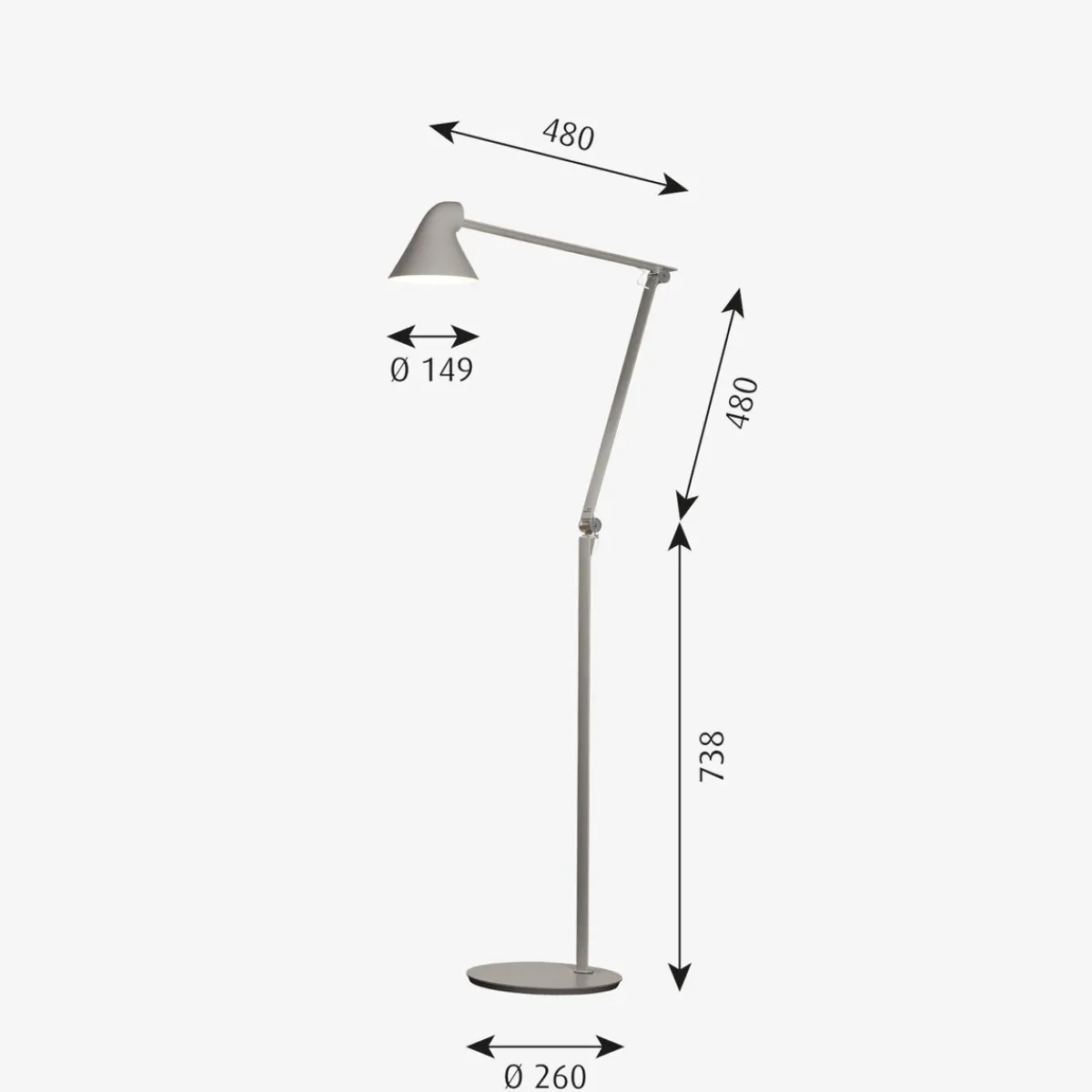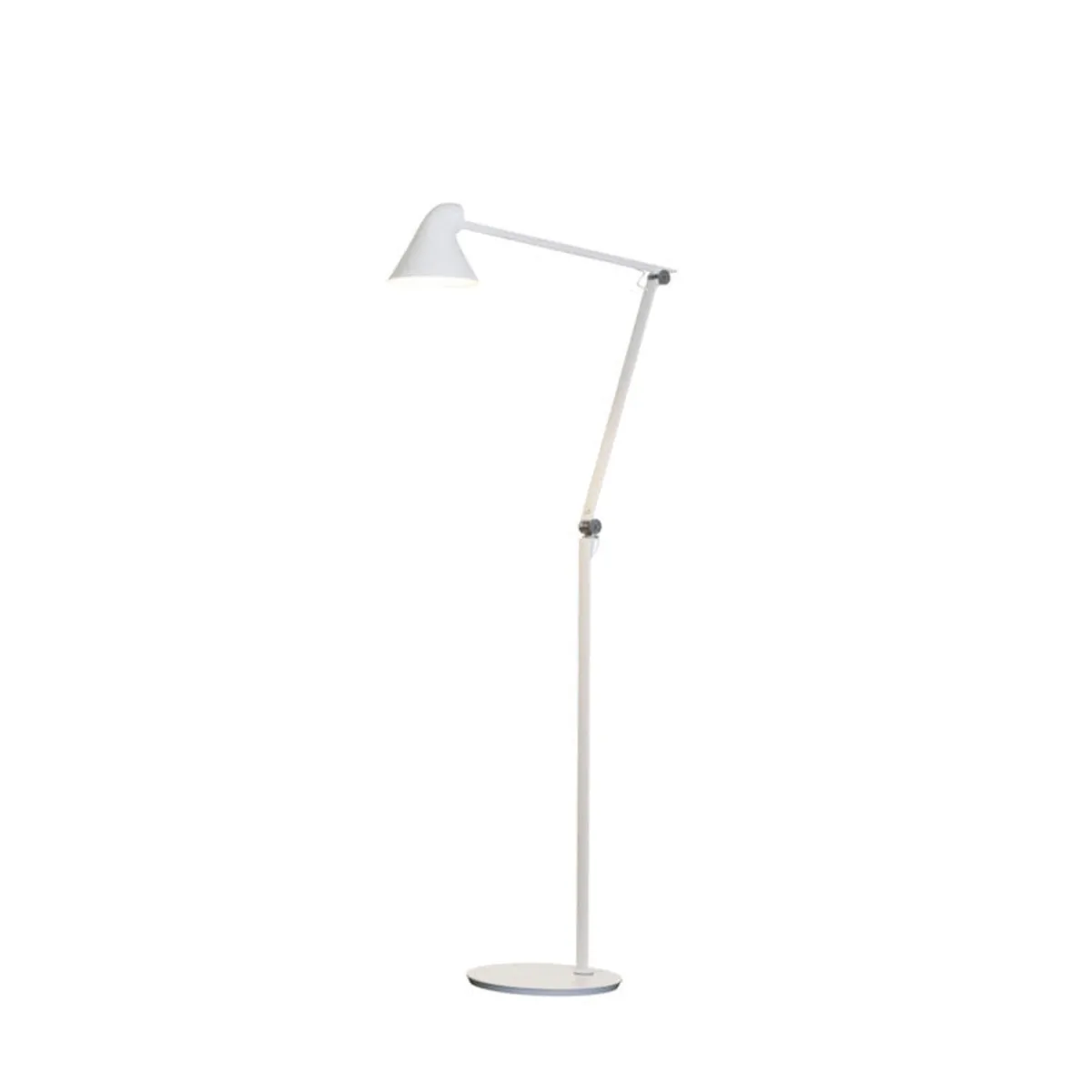 Louis Poulsen NJP gulvlampe er en modernistisk vri på den klassiske arkitektlampen. Lampen gir direkte, blendfritt, horisontalt lys og reflekterer samtidig noe av lyset gjennom baksiden av hodet slik at øvre del av armen lyses opp. Det ergonomiske designet armaturhodet former lyset og sørger for optimal retning på lyset. Et enkelt mekanisk system gir stor bevegelsesfrihet, slik at lyset alltid kan stilles inn på det perfekte stedet ved lesekroken. Skjermen er malt hvit på innsiden og reflekterer behagelig, diffust lys.