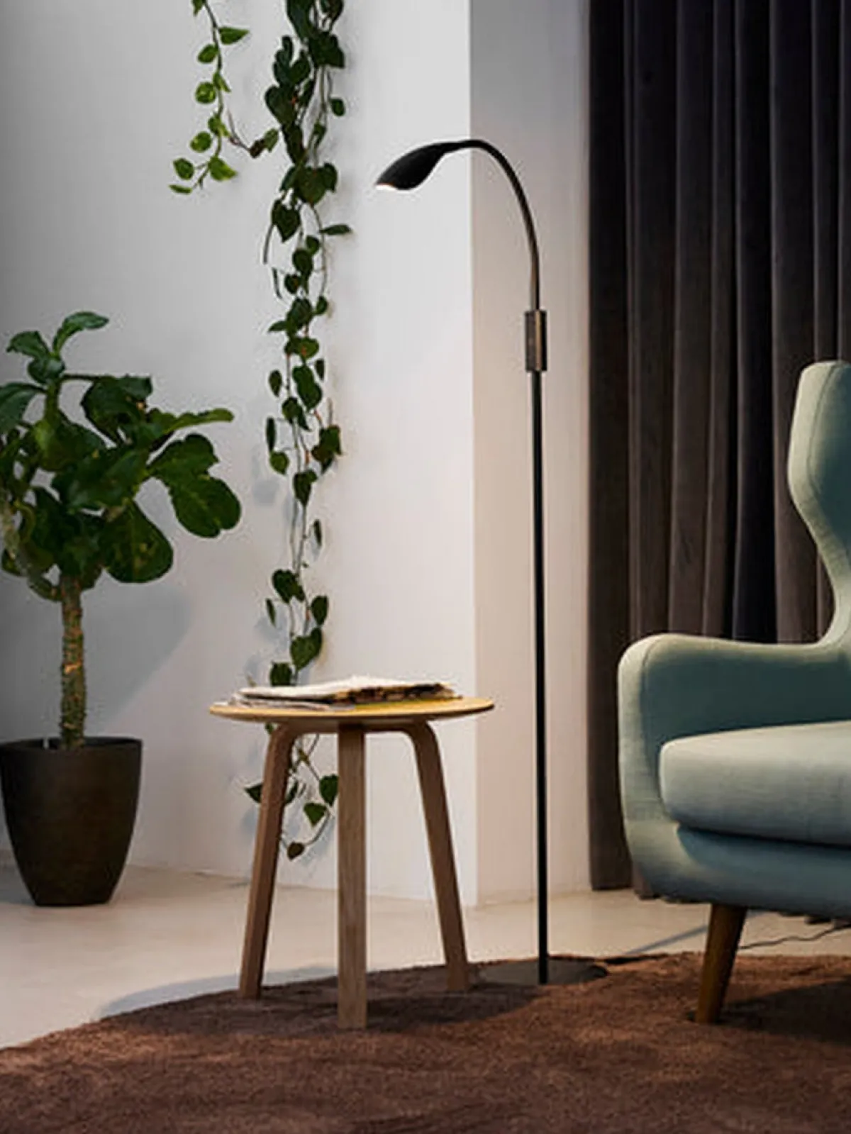 Mamba er en fleksibel gulvlampe som passer perfekt som leselampe. Lampen kan dimmes i 3-steg og finnes i fargene hvit eller svart.