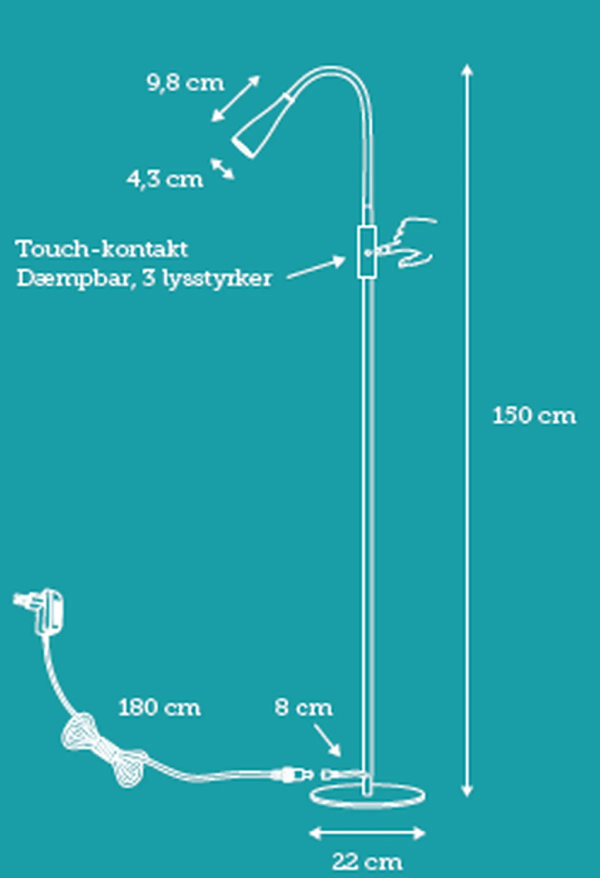 Twist er en fleksibel gulvlampe som passer perfekt som leselampe. Lampen kan dimmes i 3-steg og finnes i fargene hvit eller svart.