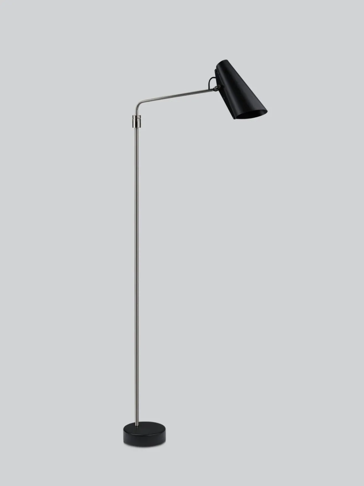 Birdy swinglampen er tilgjengelig i et utvalg av svart, messing eller stålfinish. Lampen er enkel å bruke og har en jevn roterende akse takket være stålkroppen og aluminiumsskjermen. Birdy swing finnes som gulv, bord og vegglampe.