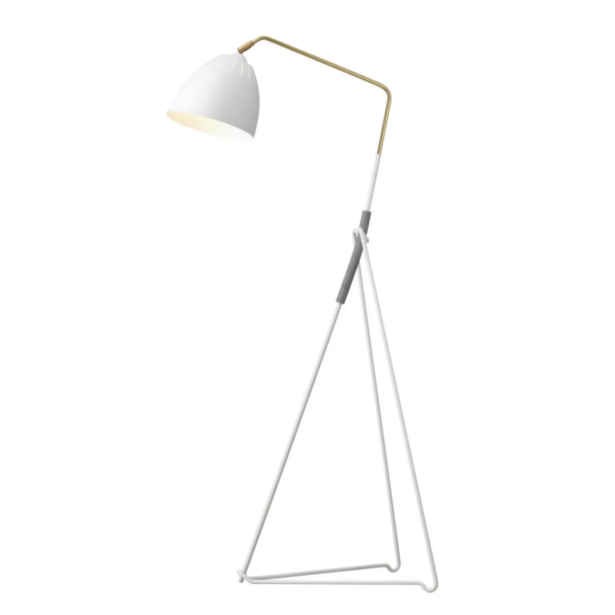 Lean er tilgjengelig i matt svart og hvit teksturfarge. Gulvlampens skrå arm strekker seg praktisk over en sofa eller lenestol, og den justerbare skjermen gir et komfortabelt leselys.
