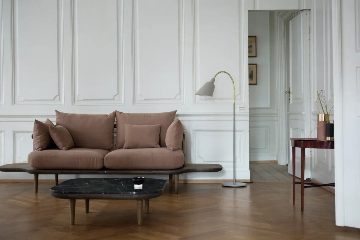 Bellevue gulvlampe ble designet av arkitekt og designer Arne Jacobsen så tidlig som i 1929, en tid da funksjonalisme og modernisme sto sentralt. Lampen har elegante linjer og enkle, organiske former samtidig som den er meget funksjonell. Armen er bevegelig så en kan styre lyset dit en behøver det. Kommer i flere utførelser og farger.