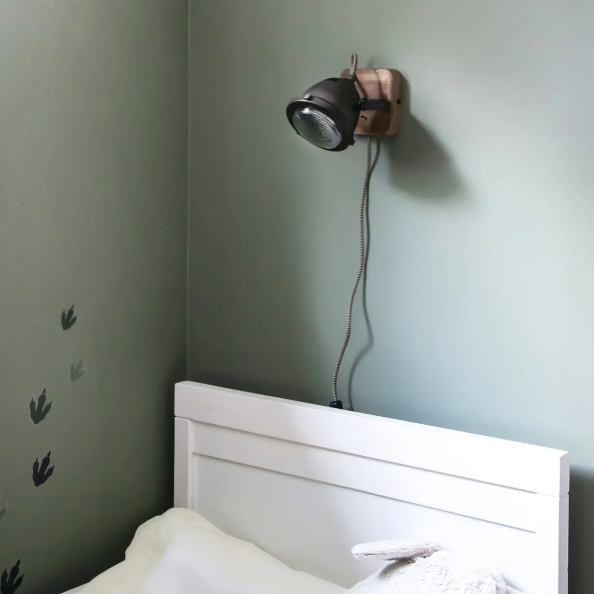 Stilig vegglampe i metall og tre, som er med på å skape en rustikk stil. Du behøver en lyspære med GU10-sokkel til lampen.