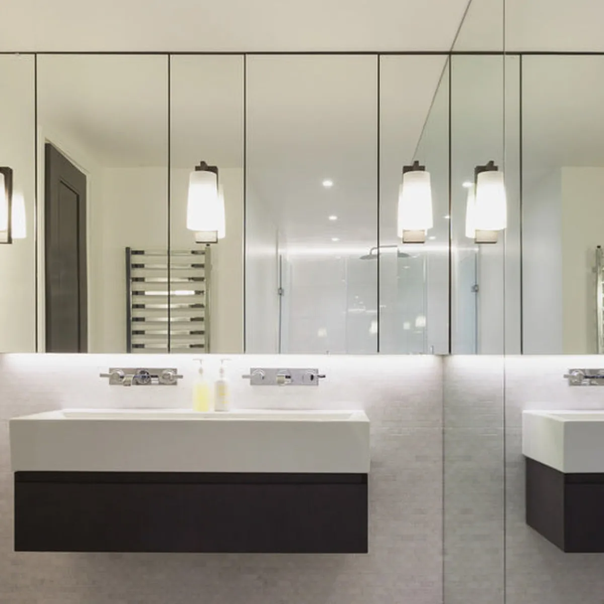 Lago er en stilfull vegglampe som kan brukes på baderommet. Modellen leveres i flere farger. Det er anbefalt at lampen med messing eller glass skjerm benyttes på baderommet.