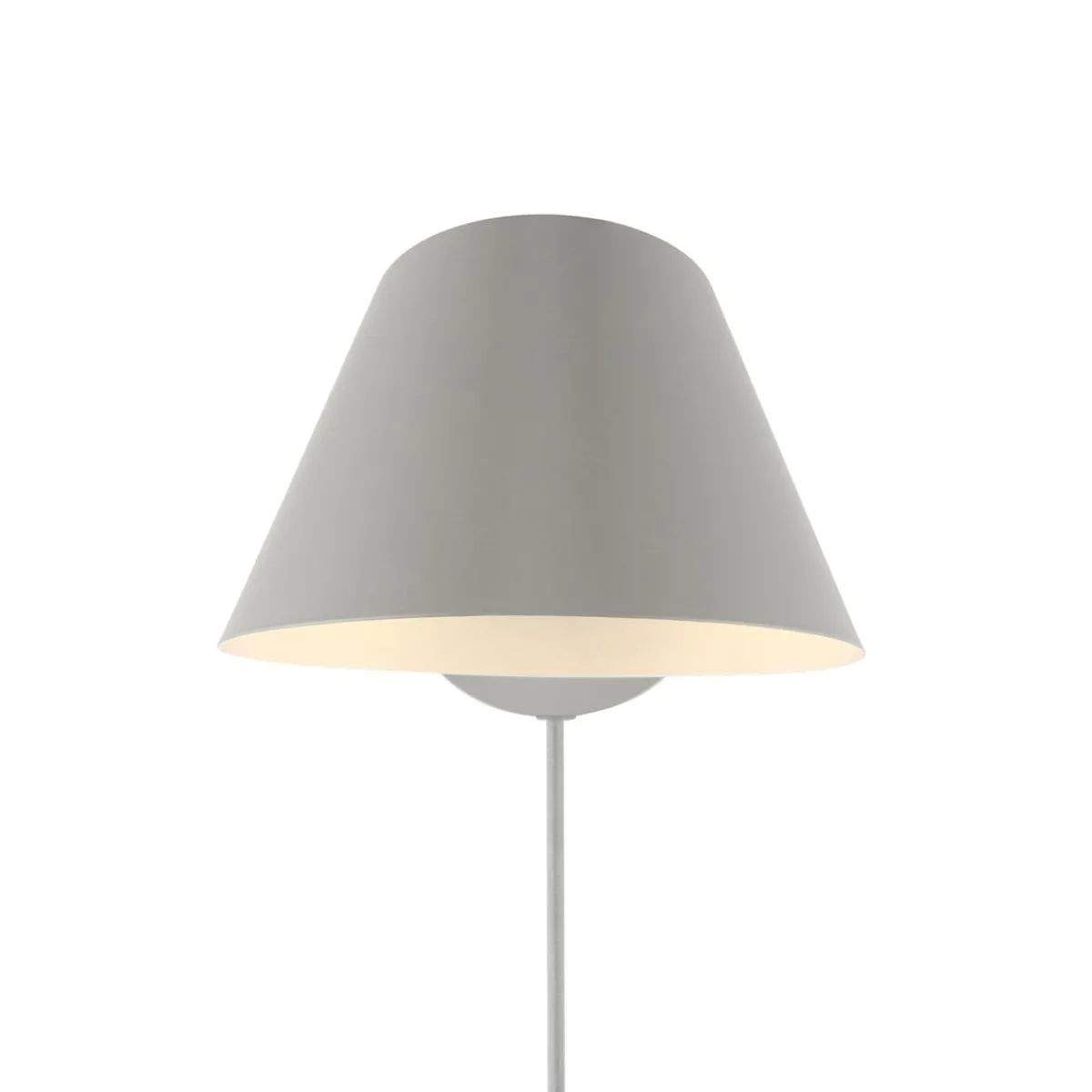 Stay er designet av Maria Berntsen og er et moderne og samtidig tidsløst design. Skjermens skrå vinkel skaper en åpen og pekende form som lar mye lys skinne gjennom. Vegglampen Stay sender ut et mykt og behagelig lys både oppover og nedover – og skaper det perfekte lyset for natt- eller kjøkkenbordet.