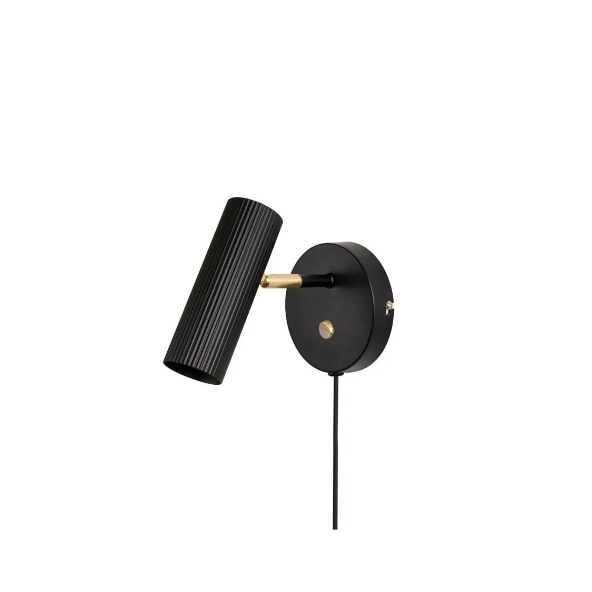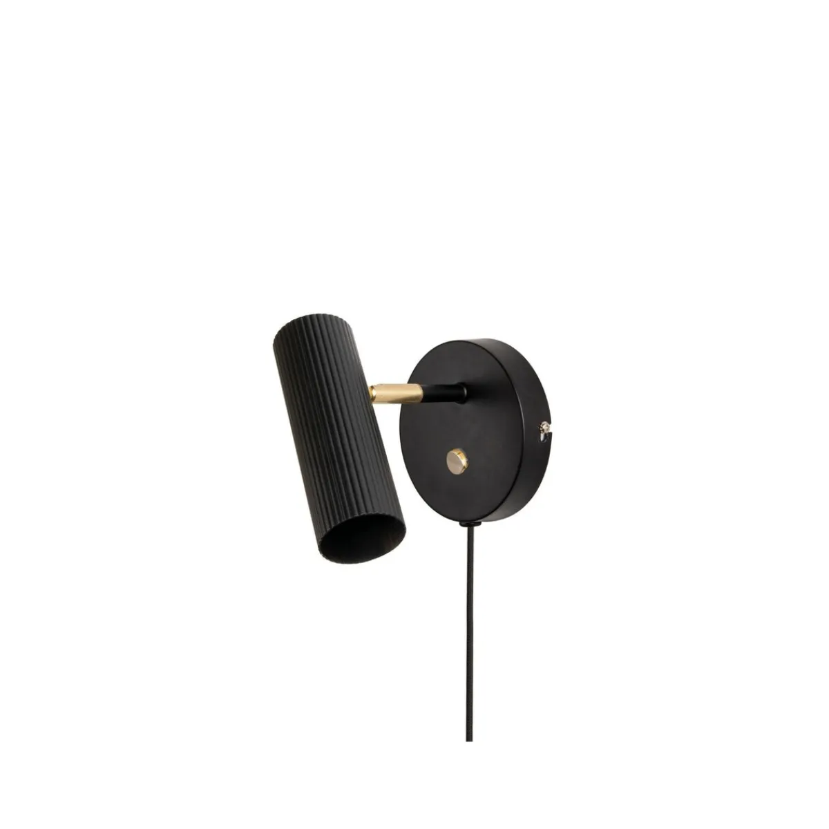 Hubble er en moderne vegglampe med en rørformet enkel ribbet skjerm i metall. Skjermen kan vinkles vertikalt og sideveis.