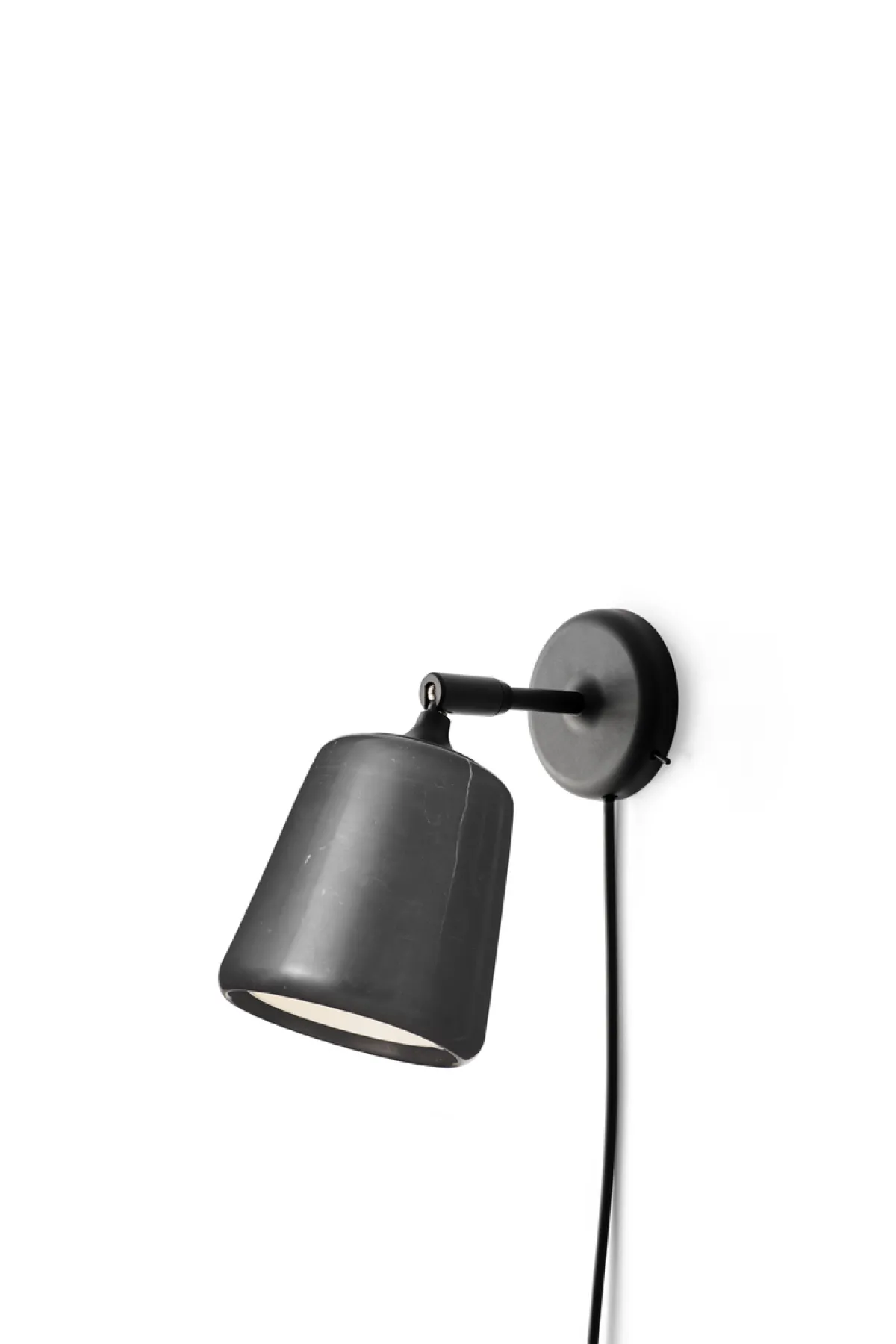 Material-serien fremhever kraften til enkelhet i form og lar deg bringe skjønnheten til naturlige materialer inn i interiøret. Vegglampen har et svingbart hode for ekstra funksjon, og en elegant svart ramme som plasserer ditt valgte materiale foran og i midten. Med varmen og dybden til materialene er Material vegglampe ideell for den intime settingen på et soverom eller for å lyse opp en gang.
