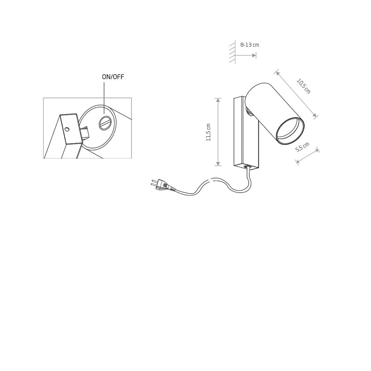 | Diameter på lampehodet | 5,5 cm |