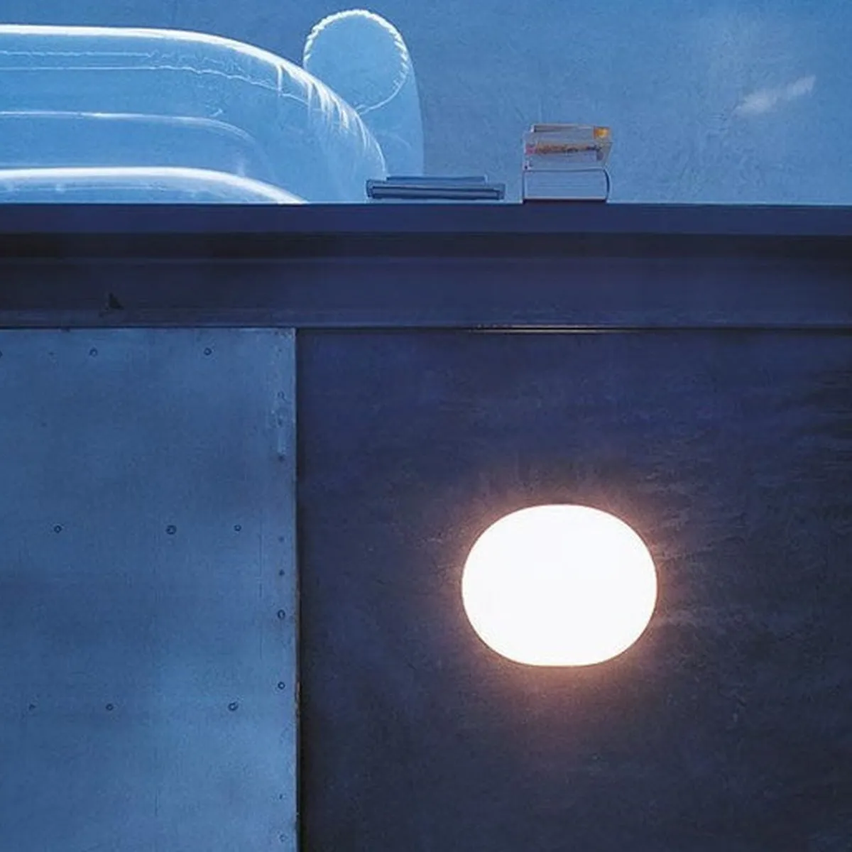 Glo-Ball C/W Zero vegg/tak er en enkel men genial lampe. Den enkle formen kombinert med godt lys gjør denne lampen til en meget anvendelig lampe som passer i alle rom. Det opale glasset gir et jevnt og behagelig lys som ikke blender. Passer godt i gangen, trappeoppgangen eller på badet og kan brukes på vegg eller i taket. Den er laget av ett stykke hvitt, munnblåst glass og minner mest om en måne med jevn, generell belysning. Glo-Ball er en del av en stor serie bordlamper, gulvlamper, vegg- og taklamper. Designet av Jasper Morrison i 2009