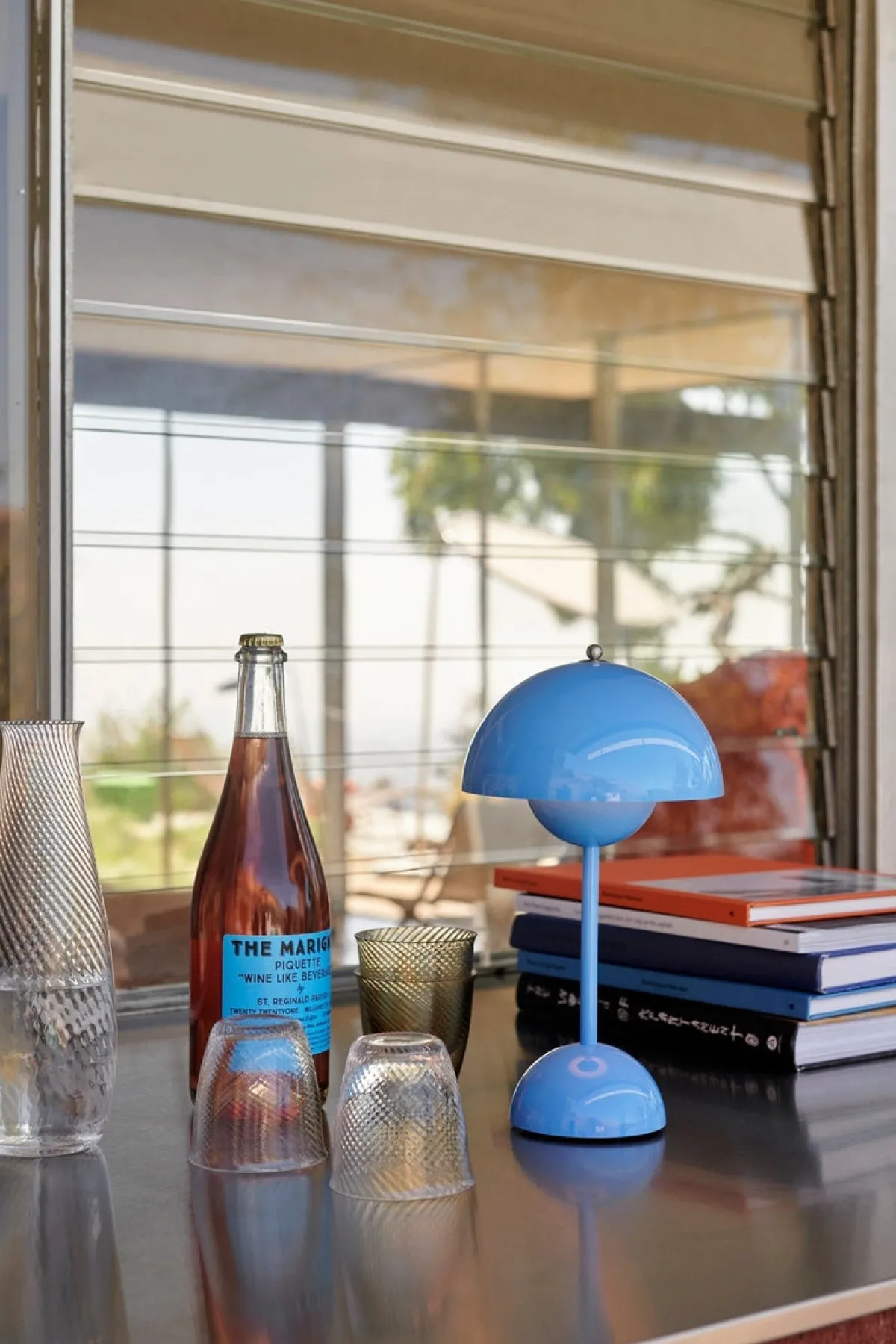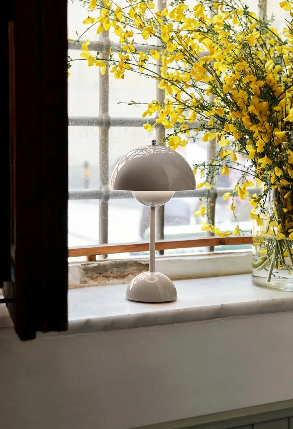 Flowerpot VP9 oppladbar bordlampe hører hjemme i ethvert hjem. Denne geniale lampen er oppladbar, du kan bære lampen med deg og plassere den hvor du vil uten å tenke på ledninger, også utendørs. Det medfølger en USB-ladekabel. Den er tilgjengelig i et bredt spekter av moderne farger og vil gi en koselig atmosfære til innendørs og utendørs omgivelser. Flowerpot lampen er en fargerik klassiker designet av Verner Panton. Flowerpot VP9 oppladbar er lavere enn den klassiske Flowerpot VP3 bordlampen med ledning.