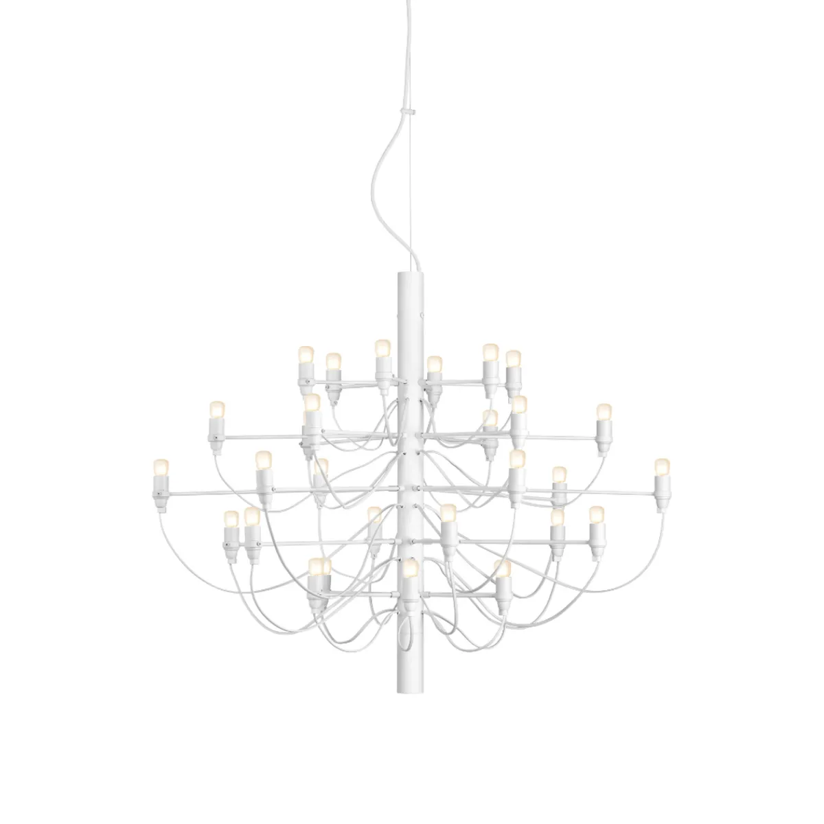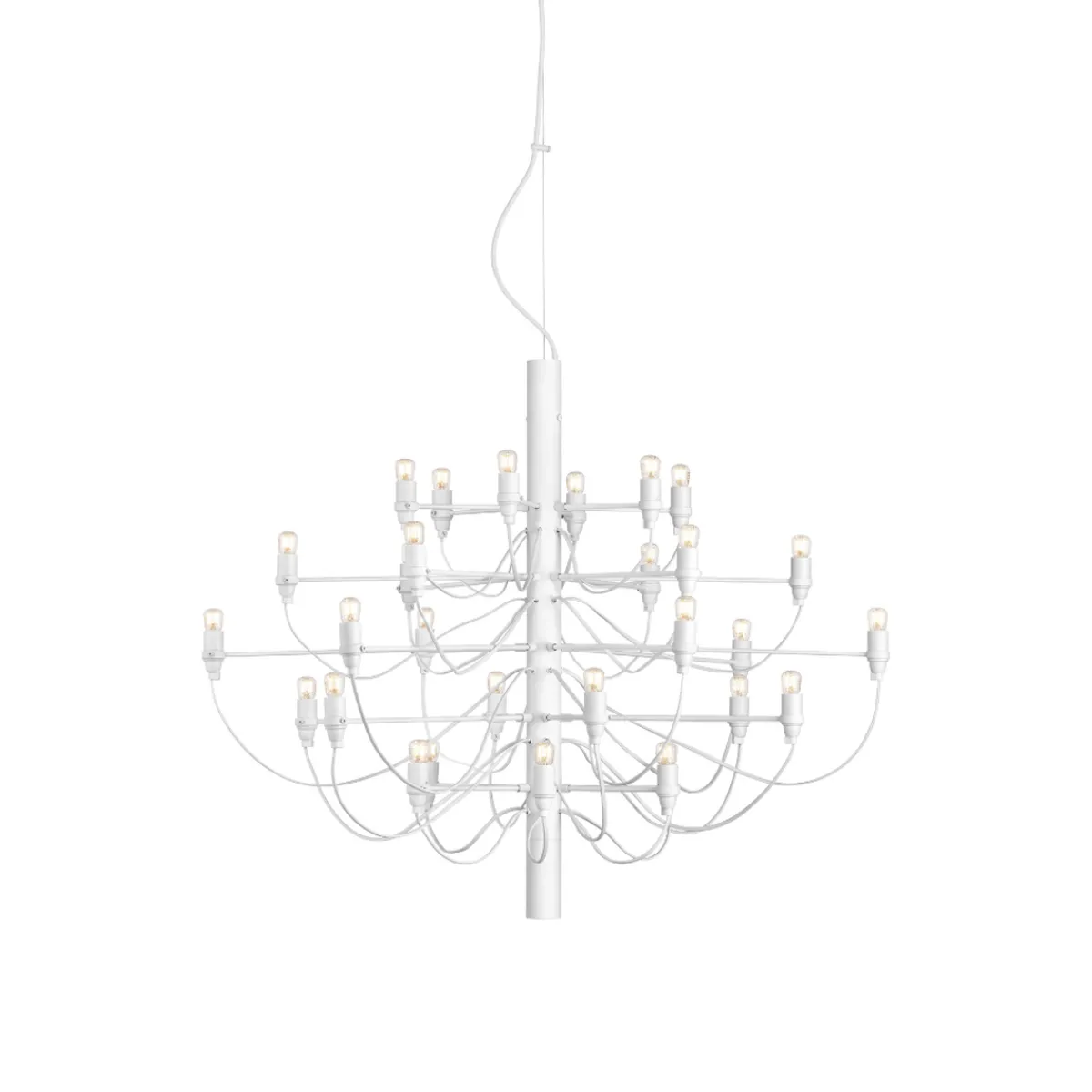 Lysekronen 2097 fra FLOS er en tidløs og klassisk lampe som hever ethvert rom. Den er tilgjengelig i sølv, messing, hvit og matt sort og i fire størrelser. Lysekronen 2097 ble designet av Gino Sarfatti i 1958 og har blitt ett lampeikon. Dette er en tidløs designklassiker og lysekronen gir mye lys til rommet. Flott å bruke over spisebord, over salongbordet, på soverom og i trappeoppgang.