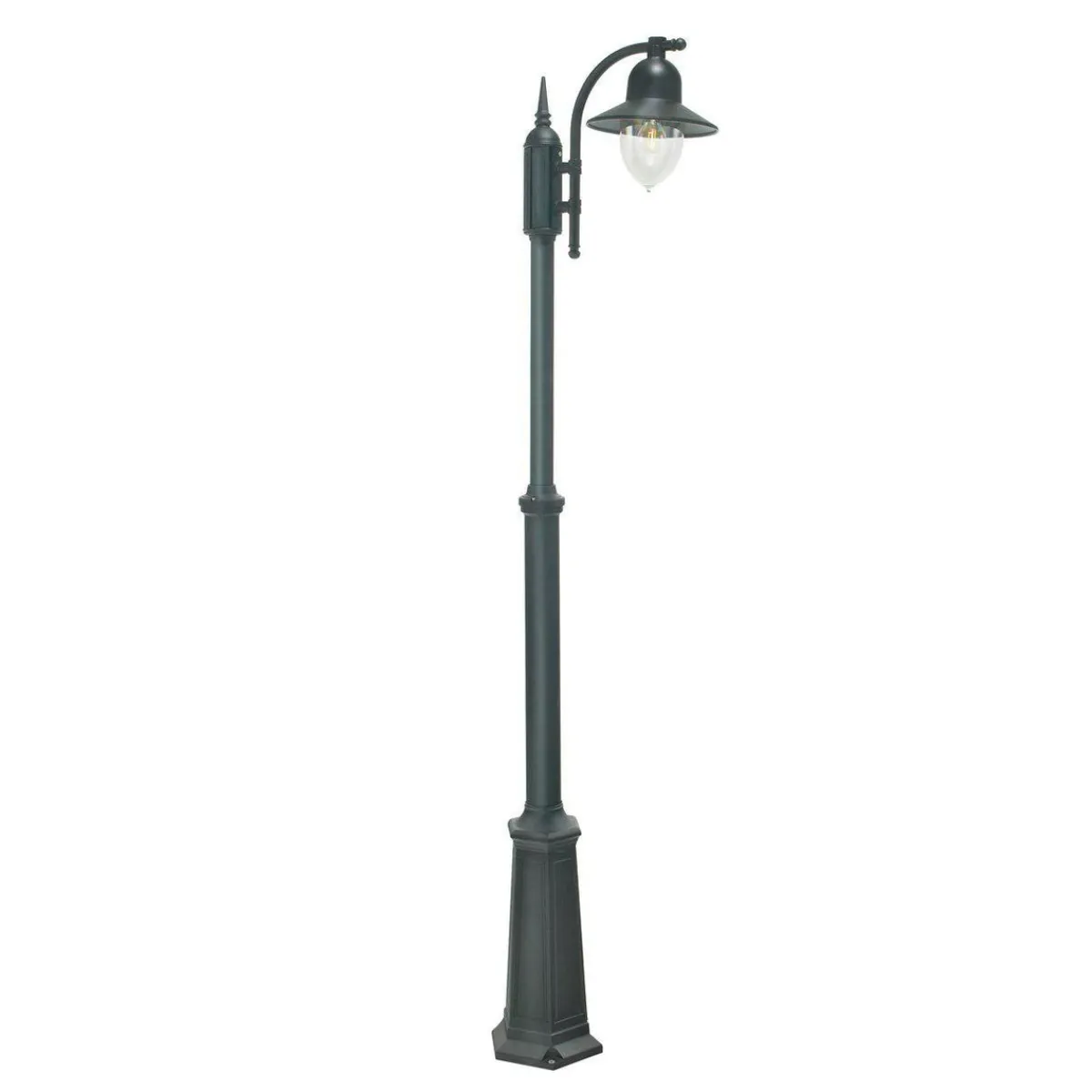 Stolpelampe i klassisk design. Høyden på stolpen kan enkelt justeres. Glass i polykarbonat. Hvit kuppel kan bestilles. Festejern og markfeste bestilles separat. Como leveres i sort. Lampen er en del av en serie som inneholder vegglampe og teleskopstolper med 1 til 3 lyktehoder. Foten på stolpen har sekskantet sokkel. Avstand mellom boltehull er 20,5cm (3 bolter).
