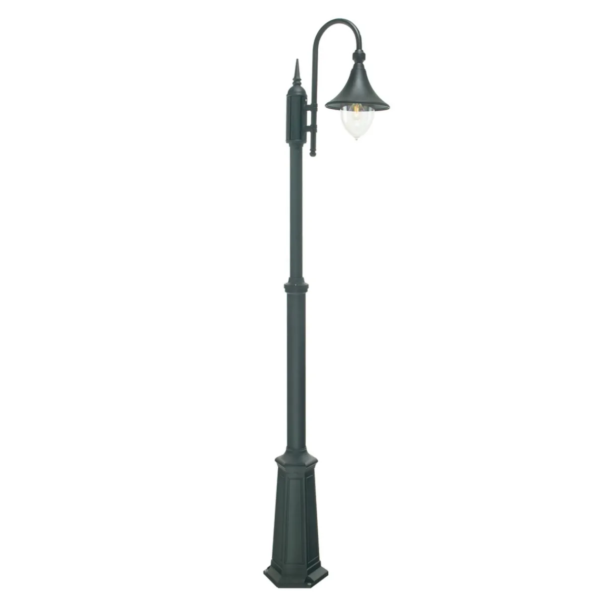 Stolpelampe i klassisk design. Høyden på stolpen kan enkelt justeres. Glasset er av slagfast klar (sotet) polykarbonat. Hvit kuppel kan bestilles.