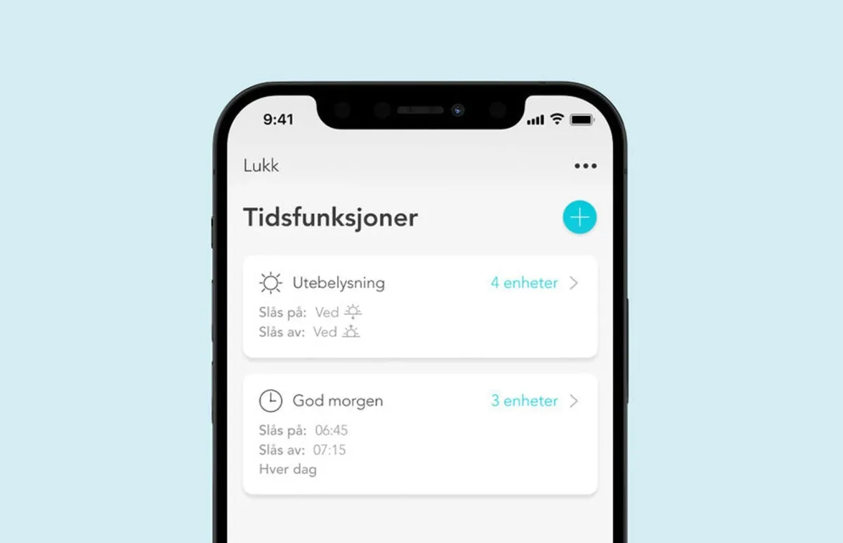 La belysningen følge soloppgang og solnedgang, eller tenn og slukk lamper på et bestemt tidspunkt. Alle produktene våre har innebygd astro- og ukesur, noe som gjør enkel planlegging mulig.