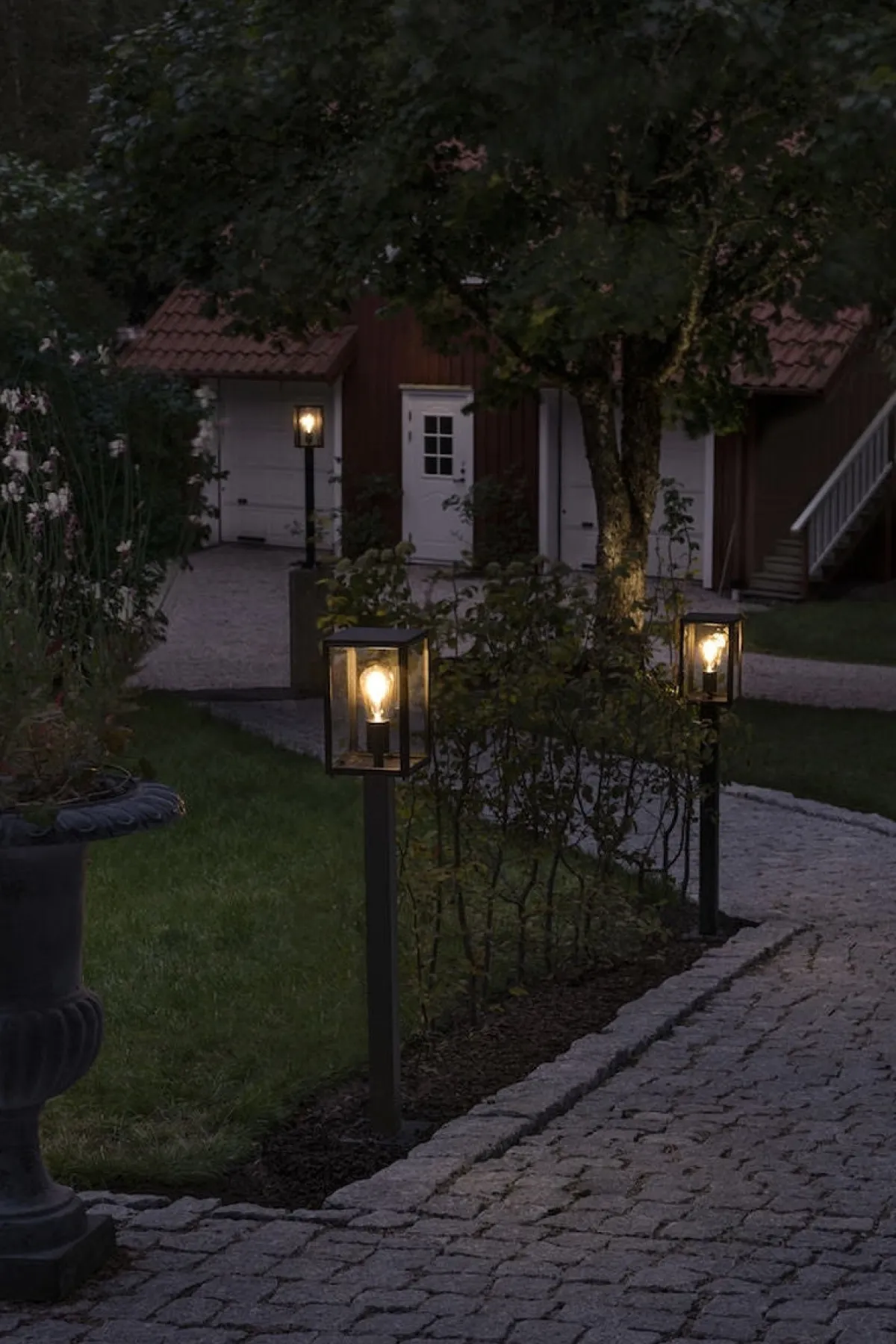 Carpi stolpelampe 100 cm i sortlakkert metall og klart glass.