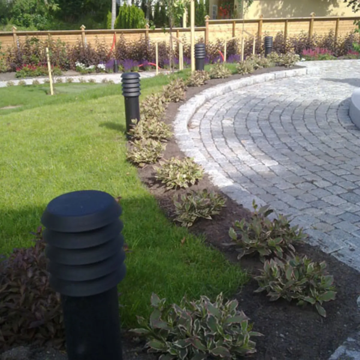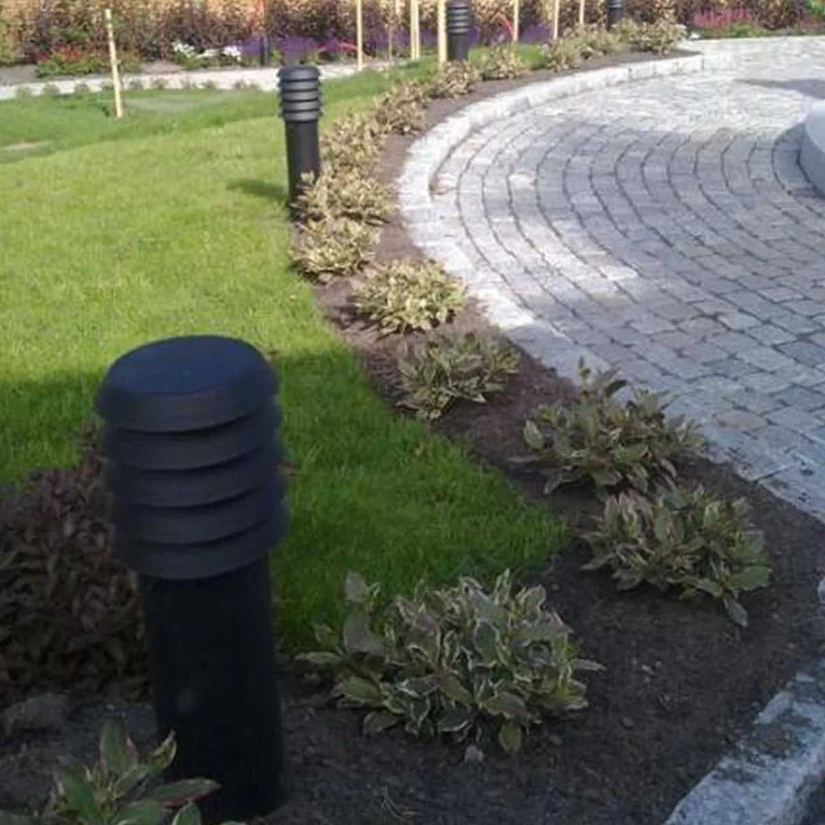 Alta-pullert i moderne design med lys som lyser nedover. Pullerten har opalhvit glasskuppel i polykarbonat, som gir et jevnt og behagelig lys.