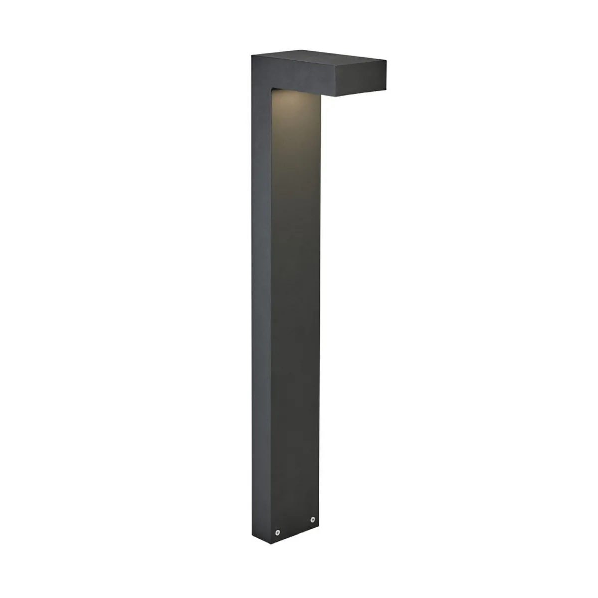 Stilren pullert i pulverlakkert aluminium. Blendfri armatur med indirekte lys.