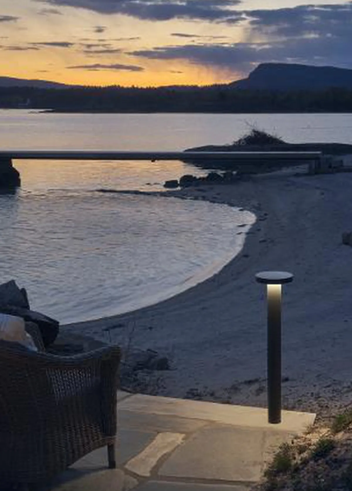 Stilren LED pullert i aluminiumstøp. Blendefri med indirekte lys. Polykarbonat glass med optisk struktur. Lampen leveres i fargene aluminum og grafitt.