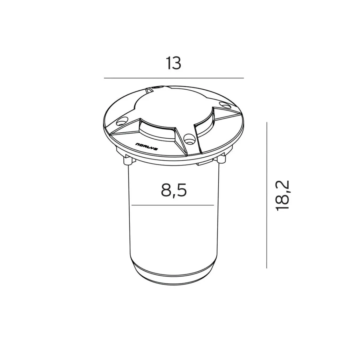Topp deksel i aluminium. Armaturhus i aluminium. Frostet polykarbonat Godkjent for overkjøring. Levers inkl. polypropylen hylse for nedstøpning/nedgravning. Innføringsnippel av stål for ø6,5-7,5mm kabel. 3 meter ferdigmontert kabel medfølger. Inkl. LED lyskilde