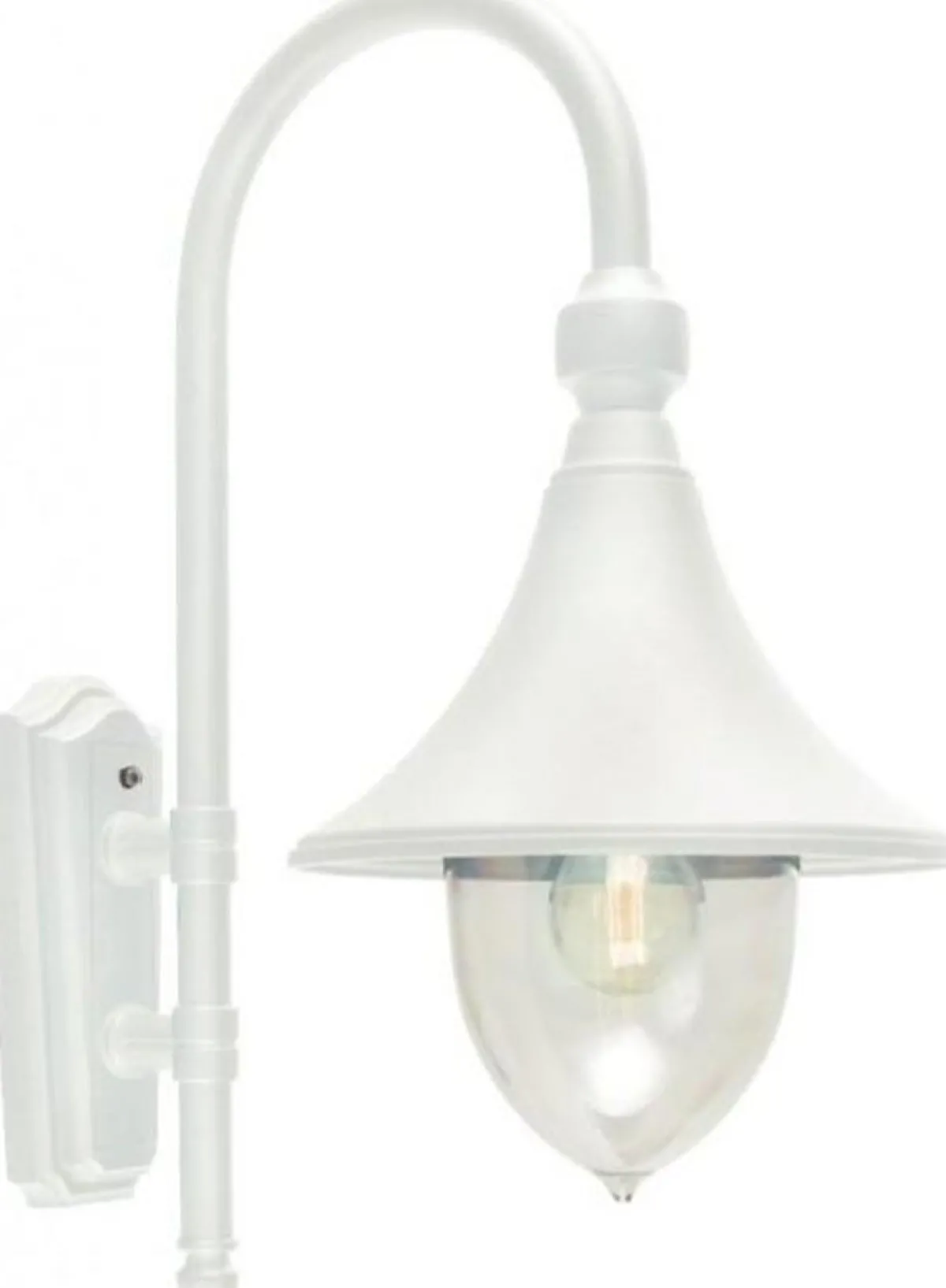 Vegglampe i klassisk design. Glass av slagfast klar polykarbonat. Hjørnefeste finnes som tilbehør (art. 152). Firenze leveres i fargene sort og hvit.
