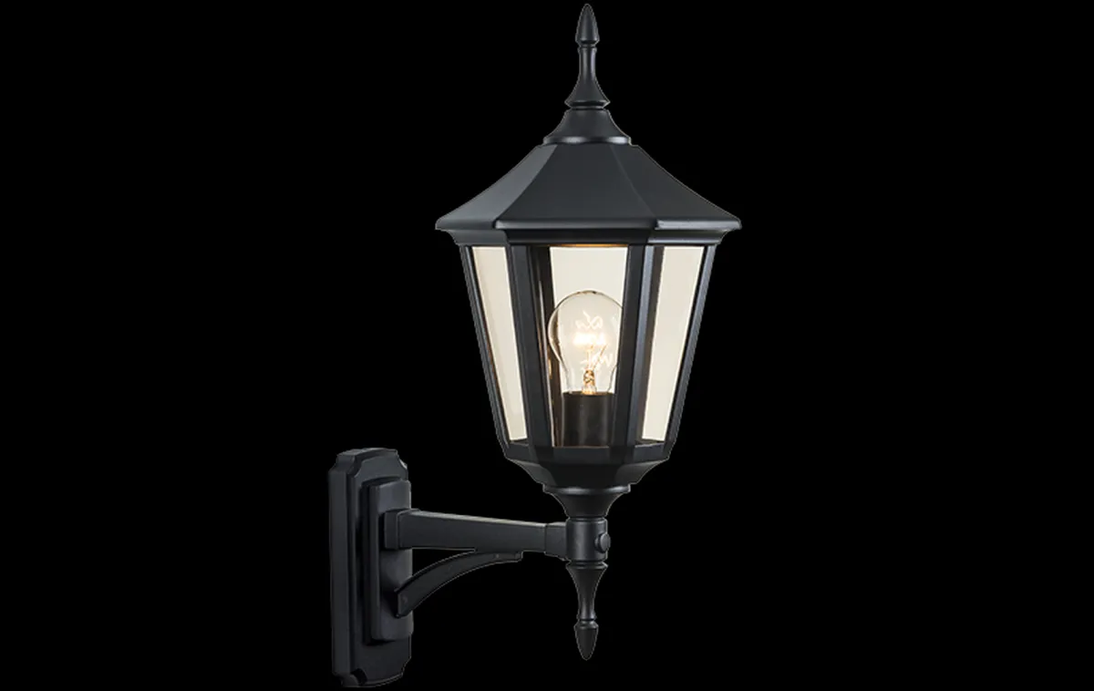 Klassisk veggarmatur for utendørs bruk, produsert i trykkstøpt aluminium med pulverlakkert sort eller hvit overflate. Kan med enkle grep gjøres om til nedhengt modell. Armaturen har E27-sokkel