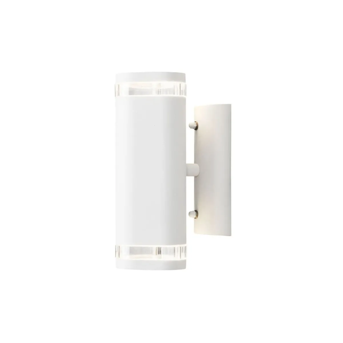 Moderne og dekorativ utelampe som lyser kraftig både opp og ned på veggen. Lampen er en del av en lampe-serie som finnes i flere varianter.