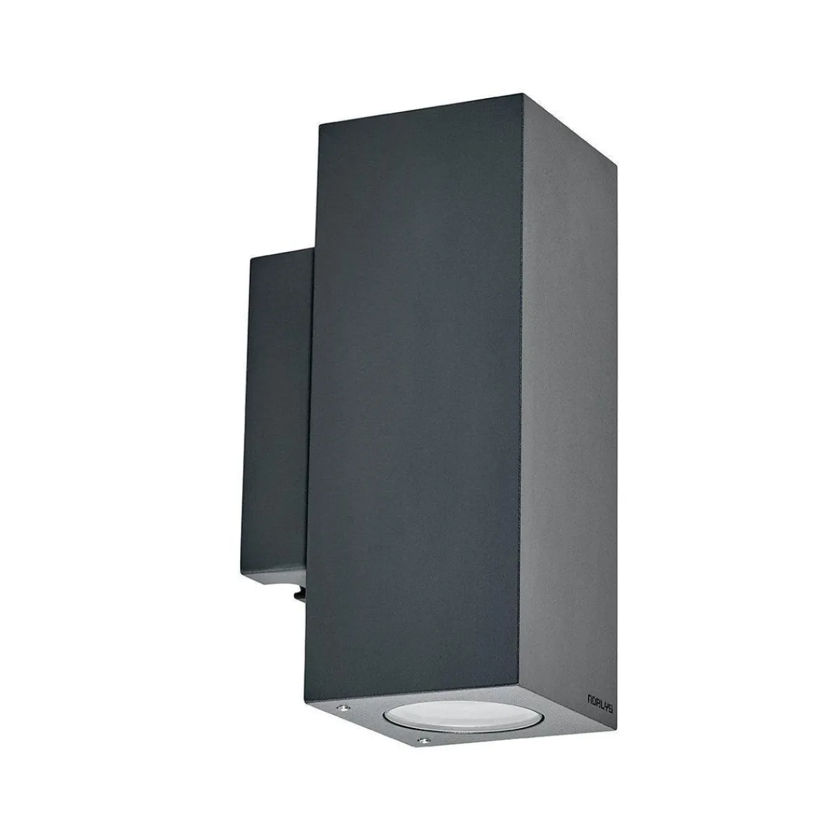 Moderne lampe i aluminiumstøp. Lyser opp og ned.Klart glass. Sandvik leveres i fargene aluminium, grafitt og hvit. LED lyskilder medfølger ( varm hvit).