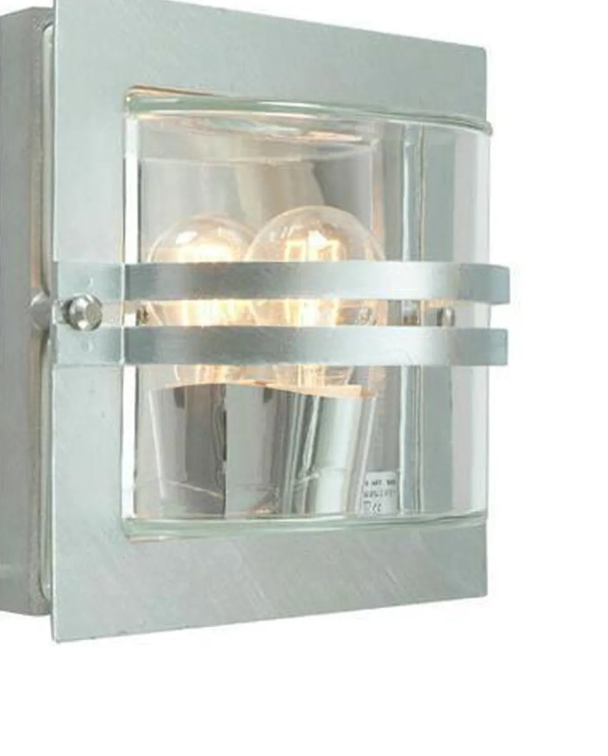 Vegglampe i moderne design for utendørsbruk. Armaturen har klart glass