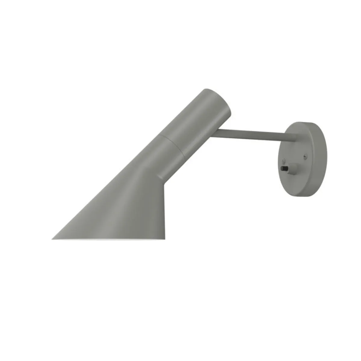 AJ vegglampen sender ut et direkte nedadrettet lys. Vinkelen og rotasjonsretningen på skjermen kan justeres for å optimalisere lysfordelingen. Skjermen er malt hvit på innsiden for å gi et mykt og komfortabelt lys. Denne varianten leveres uten ledning men med bryter på basen, beregnet på direkte tilkobling.