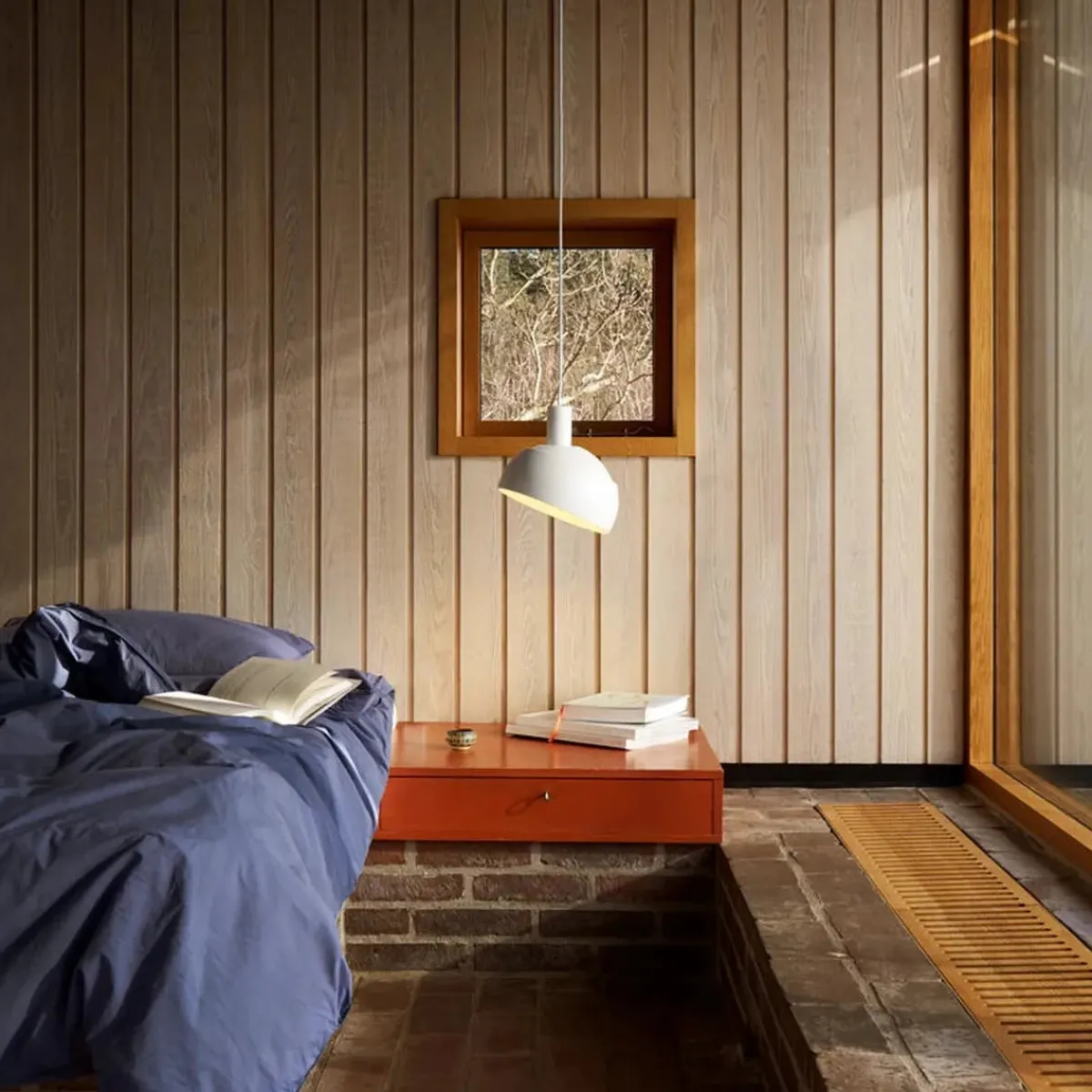 Taklampen og bordlampen ble opprinnelig designet i 1963 og deretter gjeninnført som FJ Elements i 2025, inkludert den originale tofargede grå varianten.