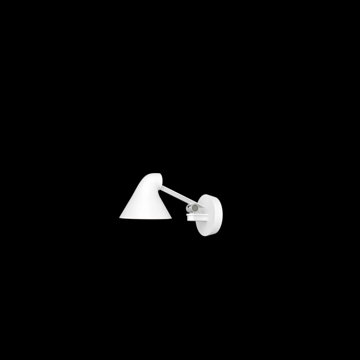 Louis Poulsen NJP vegglampe gir direkte, blendefritt, horisontalt lys og reflekterer samtidig noe av lyset gjennom baksiden av hodet slik at øvre del av armen lyses opp. Armaturhodets ergonomiske design former lyset og sørger for en optimal lysretning. Et enkelt mekanisk system gir stor bevegelsesfrihet, slik at lyset alltid kan stilles inn på det perfekte stedet. Skjermen er malt hvit på innsiden og reflekterer behagelig, diffust lys.
