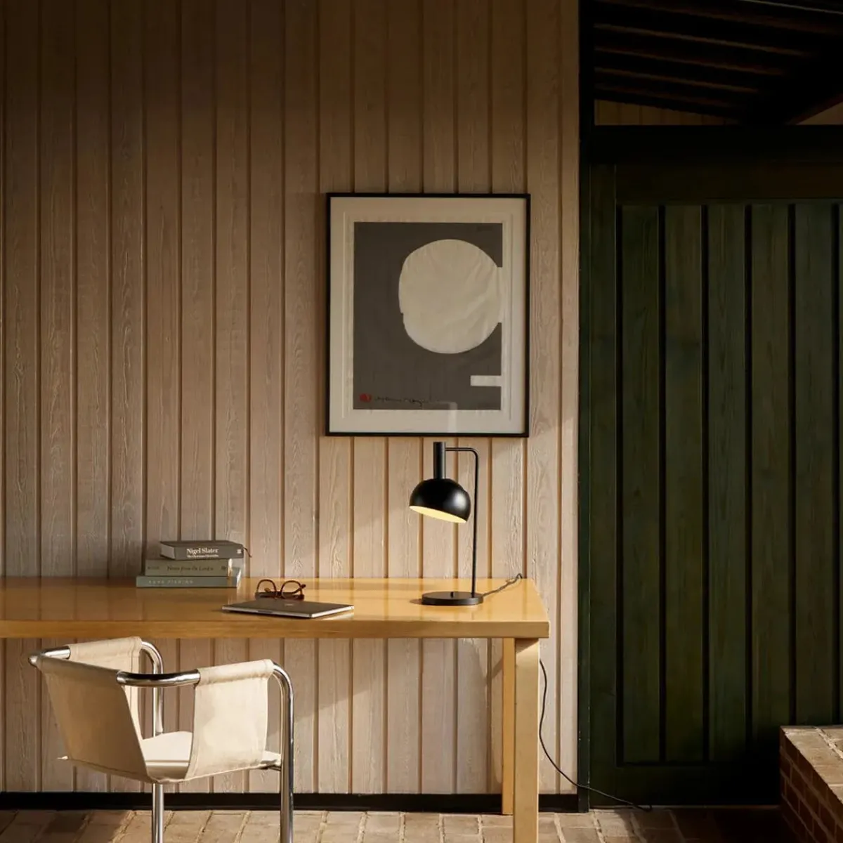 Taklampen og bordlampen ble opprinnelig designet i 1963 og deretter gjeninnført som FJ Elements i 2025, inkludert den originale tofargede grå varianten.