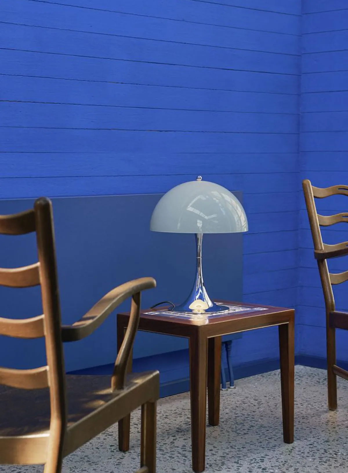 Panthella bordlampe avgir et blendefritt, mykt og komfortabelt lys.