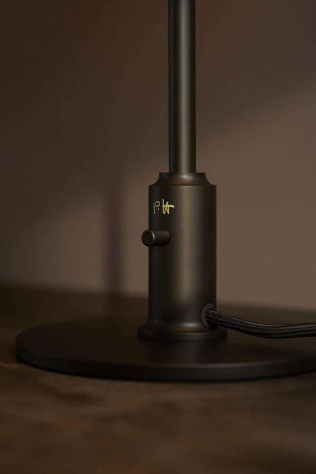 • Stamme og detaljer er i lakkert, brunert messing inspirert av de originale PH-lampene, med Henningsens signatur elegant innarbeidet.