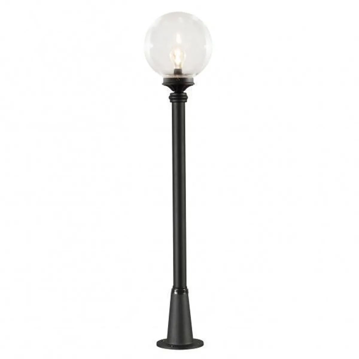 Svart Orion-lysstolpe med glasskuppel i klar farge, som passer perfekt for hage eller gangvei.