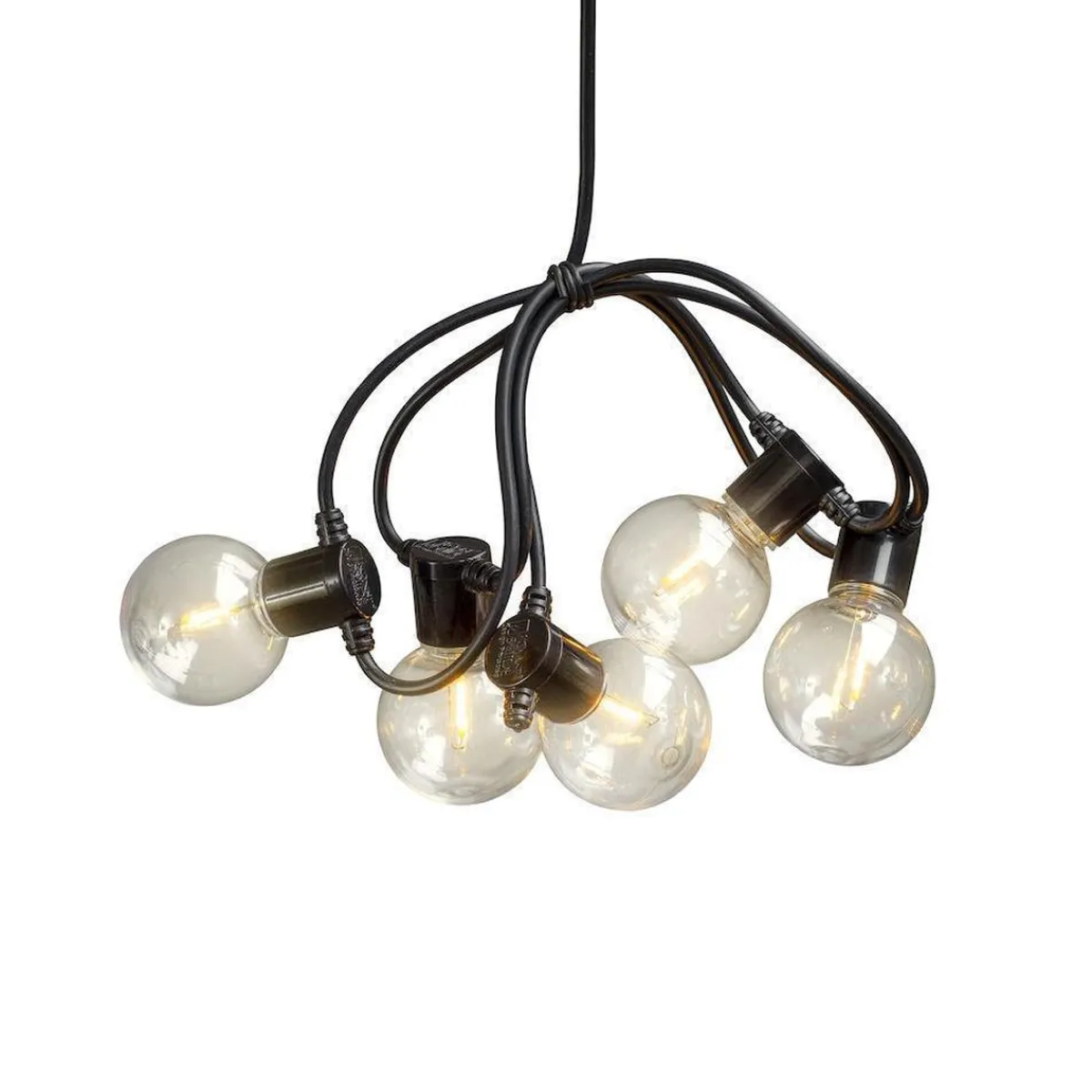 Lysslynge med 20 amber LED-lamper. Faststøpte lyspærer og kuppel i plast som gjør dem uknuselig. Det amberfargede lyset er med på å skape ekstra koselig stemning. Amber er en enda varmere lysfarge enn varmhvit, uten at den blir gul.