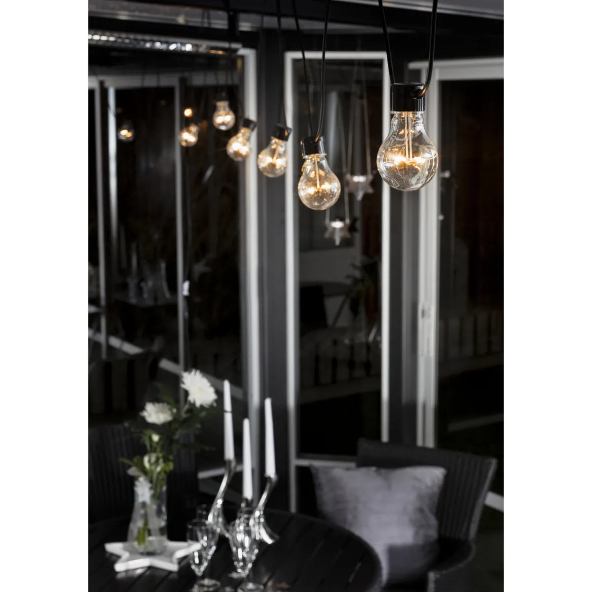 Nydelig lysslynge med amberfarget/varmt lys, som er med på å skape ekstra koselig stemning. Lysslyngen er et startsett som det er mulig å bygge ut med 3 lengder av artikkel 2397-800, slik at du får totalt 4 lysslynger på rad (1 startsett + 3 tilleggsslynger).
