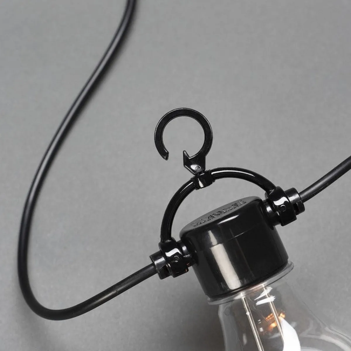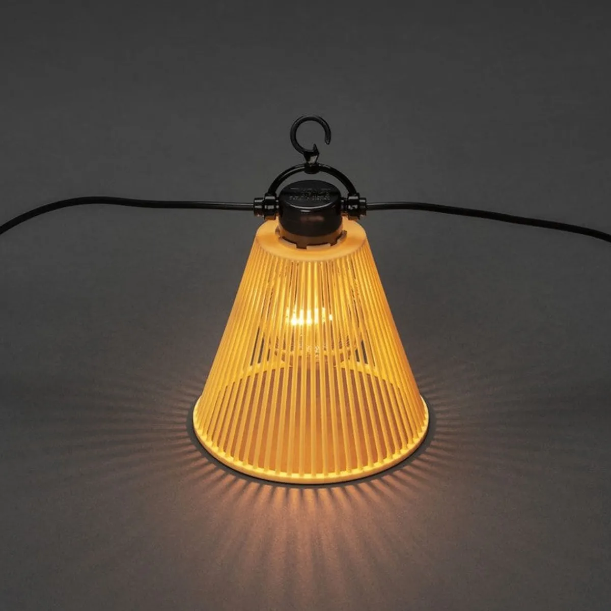 Nydelig lysslynge med amberfarget/varmt lys, som er med på å skape ekstra koselig stemning. Lyspærene henger ned fra hovedledningen og har krok på hvert lyspunkt. Lysslyngen leveres med gule skjermer og transformator som har innebygget dimmer, slik at du kan justere lysstyrken etter behov.