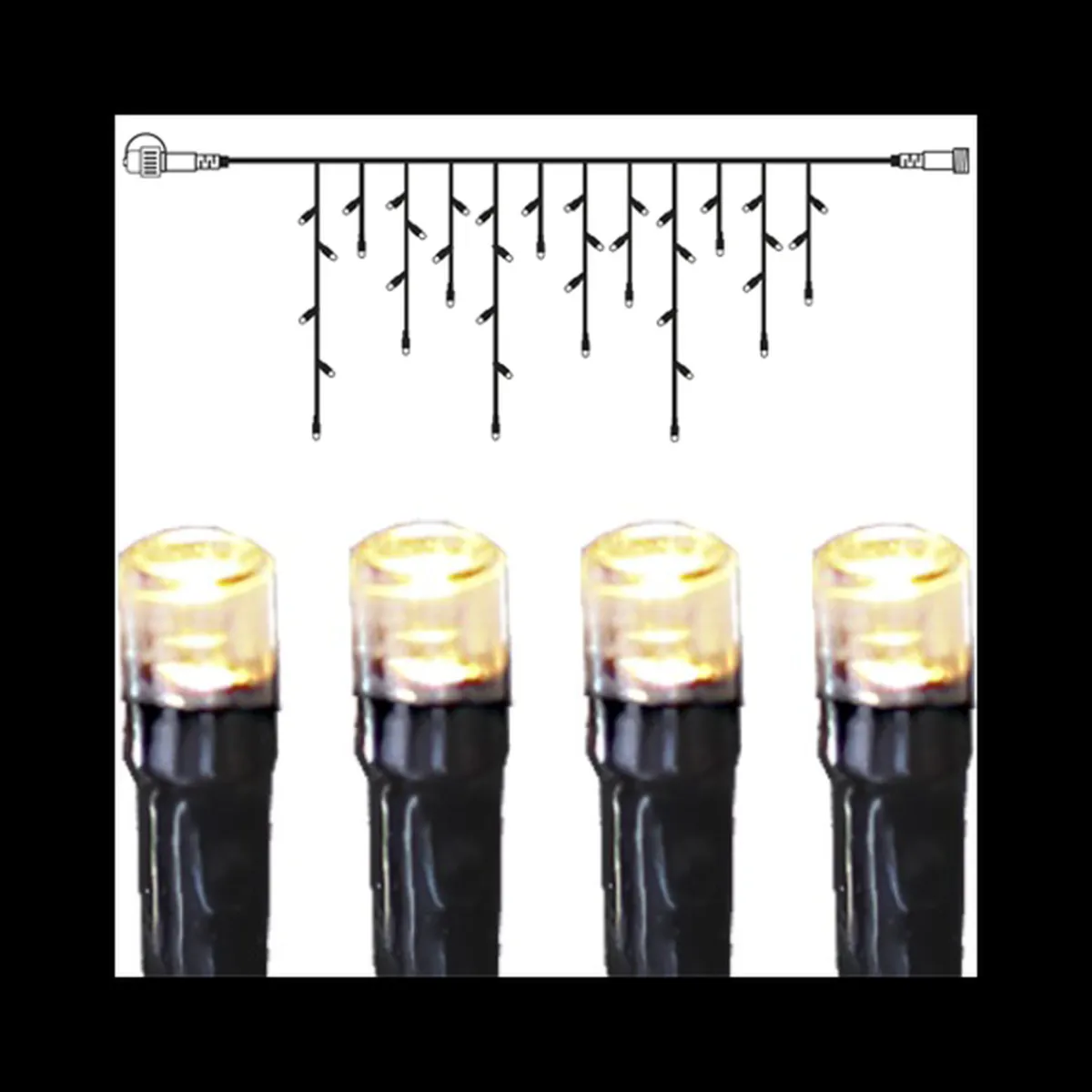 System 24 er et komplett hagesystem, fest og julebelysningssløyfesystem. Ekstra istapp med 42 varmhvite LED-lyskilder. Lys slyngen er 1,5 meter lang og 70 cm høy.