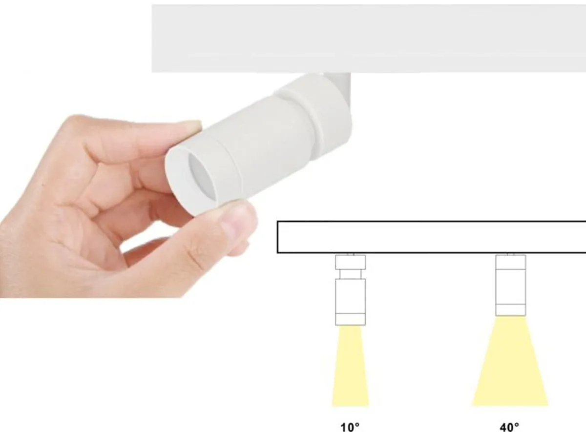 kommer i ulike størrelser og med ulike funksjoner. Adapteret på spotten blir skjult i skinnen, noe som gir et delikat og minimalistisk design. Kommer i fargene sort og hvit.