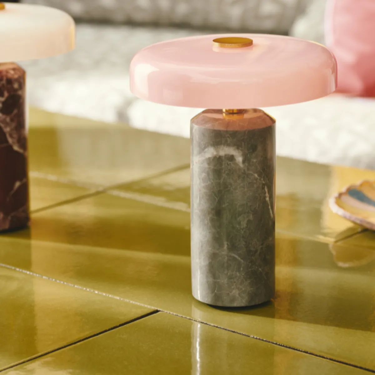Rene linjer og enkel design i vakre materialer beskriver den nye oppladbare bordlampen TRIP fra Design by us. De har tenkt på hver eneste detalj i den bærbare, oppladbare LED-lampen. Den skulpturelle designene med polert marmor og munnblåst glass gir TRIP et spesielt ekslusivt utseende. Det er en berøringsdimmer på toppen, som kan stilles inn på 3 lysstyrkenivåer. Lampen er fullt oppladbar. En full lading tar 9 timer. Den har innebygd batteri og leveres med trådløs lader og usb kabel.