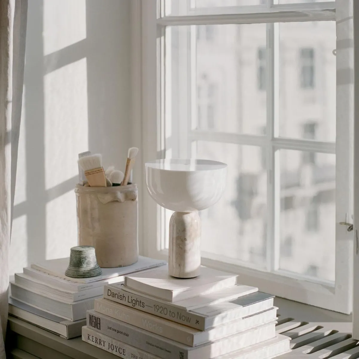 Kizu bordlampe balanserer dristige former og fascinerer øyet med sin skulpturelle komposisjon, og denne bærbare versjonen av lampen er intet unntak. Materialer og uttrykk er som vi kjenner dem, men denne trådløse, mindre størrelsen er lett å flytte rundt der det trengs lys. Med marmor som bæreelement får lampen naturlig stabilitet og den polerte steinen føles behagelig å ta på.