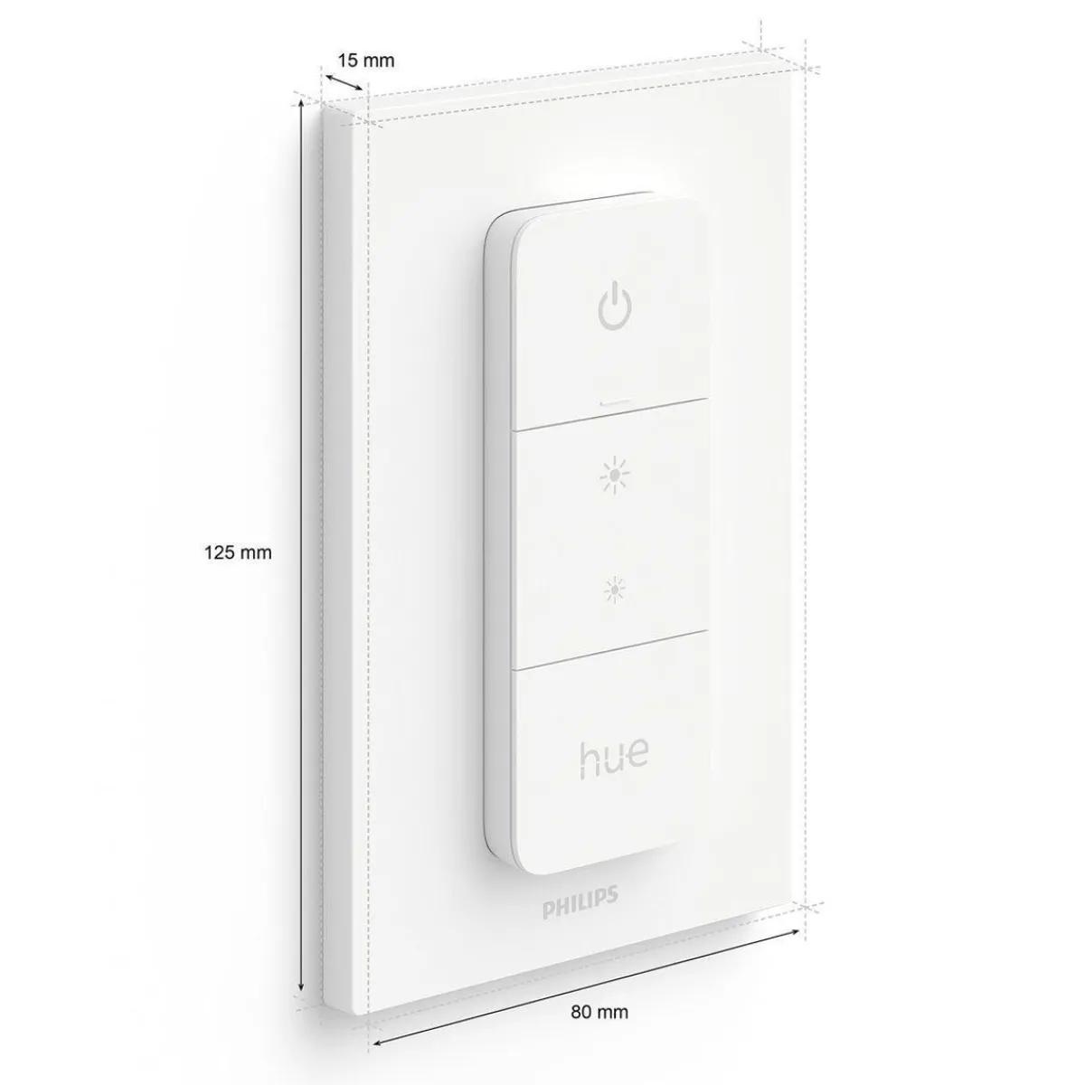 Dim eller gjør rommet lysere, slå på og av lysscener, eller få det beste lyset basert på tiden på dagen. Hue Dimmer switch kan festes på vegger eller magnetiske underlag, men den kan også brukes som fjernbetjening hvor som helst i hjemmet