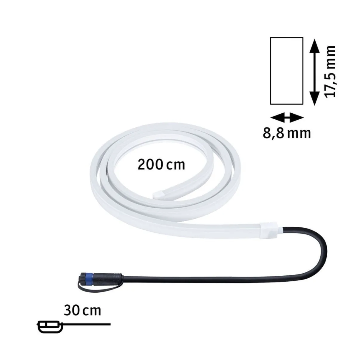 Den 2 meter lange Plug & Shine Smooth Strip i 3000K er fullstendig værbestandig og kan kobles direkte til enden av 24V-systemet. Resultatet er en lyslinje uten synlige LED-lyspunkter som kan monteres fleksibelt. Derfor er det et godt valg for å belyse hagestier, blomsterbed eller kanter. Vi anbefaler å bruke monteringsklipsene eller aluminiumsskinnen for optimal feste. Medfølger ikke og kan kjøpes som tilbehør.