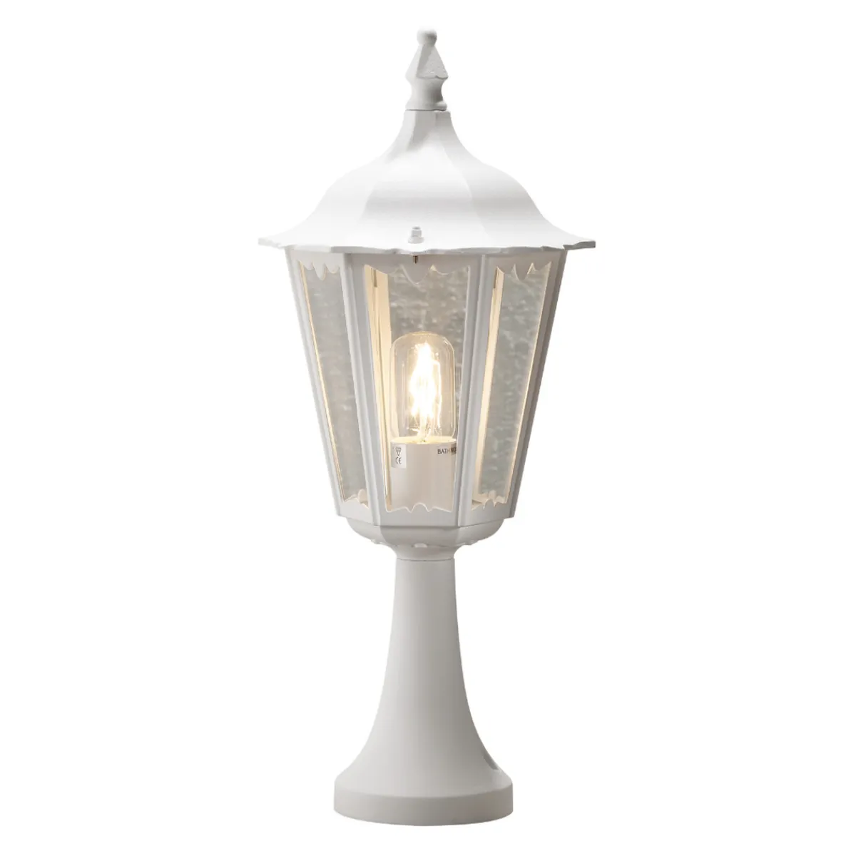 Firenze-portstolpe i klassisk design i hvitfarge. Du behøver en lyspære med E27-sokkel til lampen.